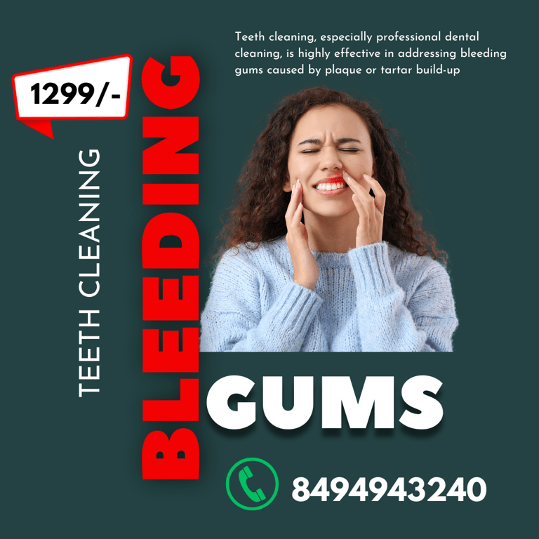 Get Professional Teeth Cleaning done at just 1299/- Teeth cleaning, especially professional dental cleaning, is highly effective in addressing bleeding gums caused by plaque or tartar build-up